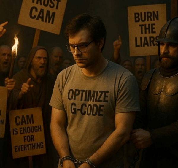 Imagine an ancient carving. At the top, a frustrated CNC machinist cries out: “When will I finally trust my G-codes?”