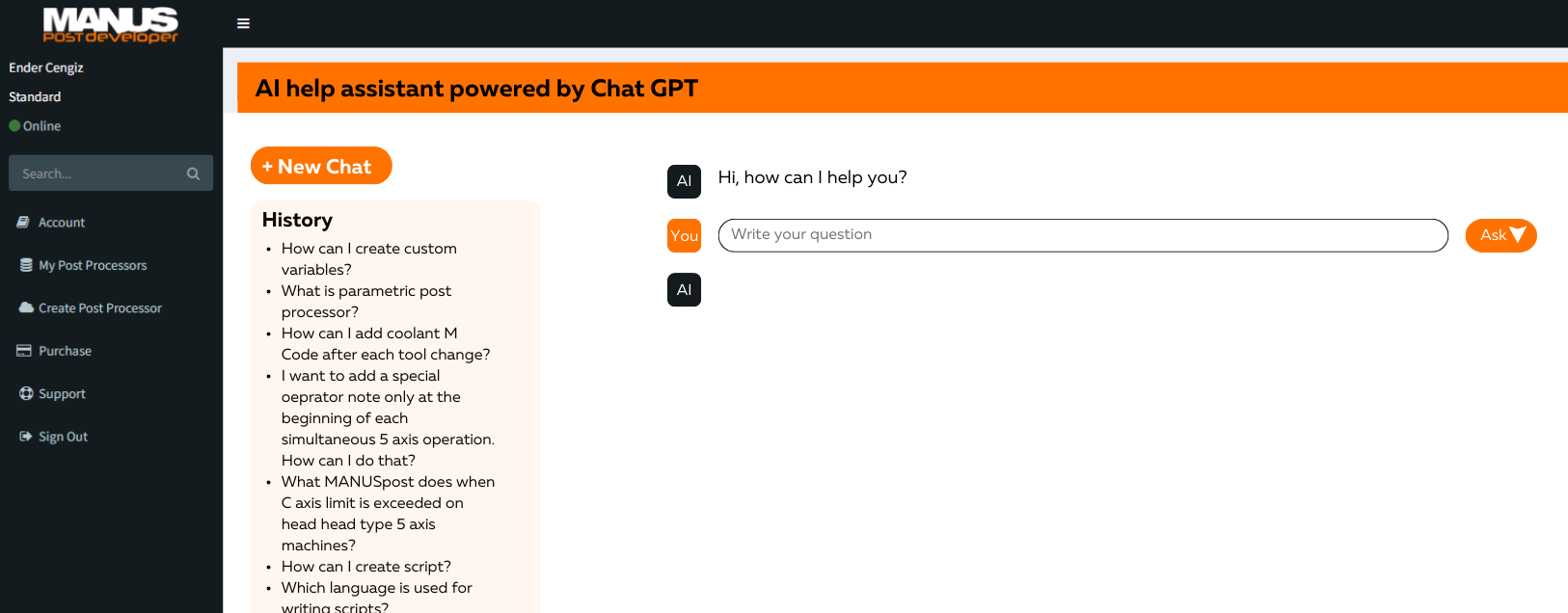9. Chat GPT Powered AI Assistant: Lastly, we have the worlds first AI help assistant powered by Chat GPT. This AI will teach you using MANUSpsot developer. Yo uwill ask any questions you want, and the AI will not only anser your questions, but also will direct you to the related video that explains your question in detail.