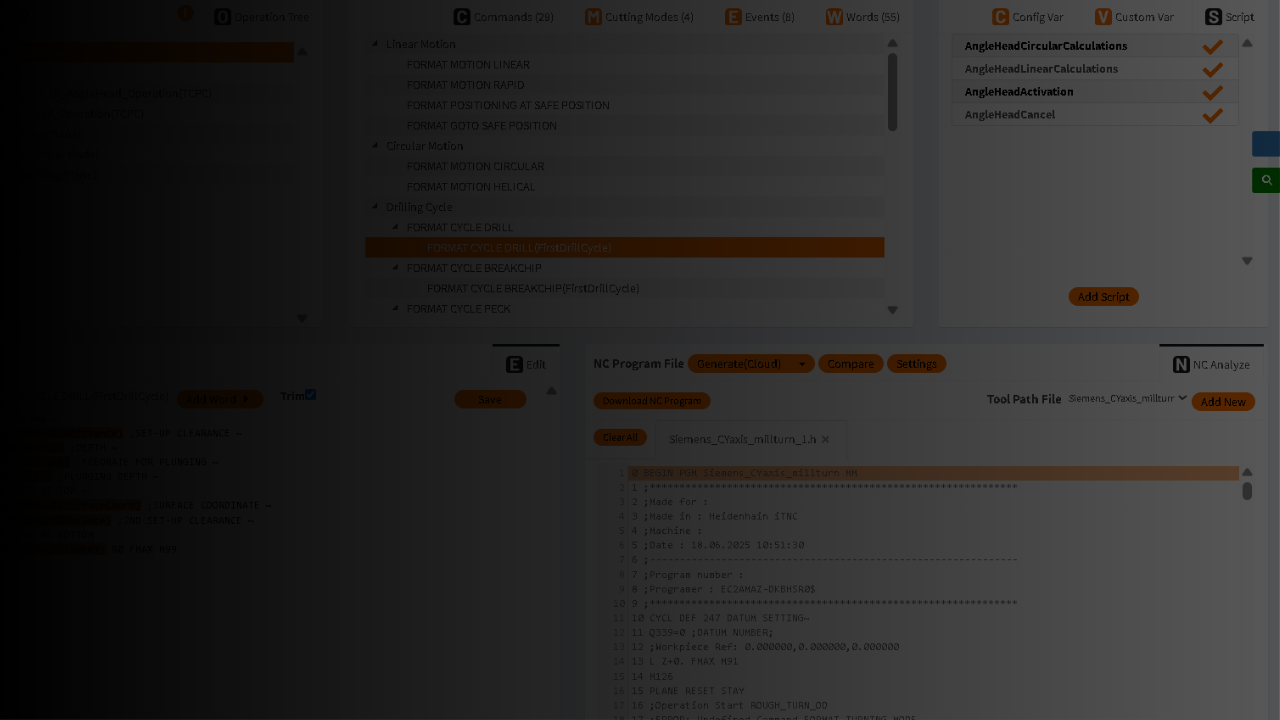 Parametric post processor is special post processor developed by MANUS for multi-axis CNC machines that do not have any active